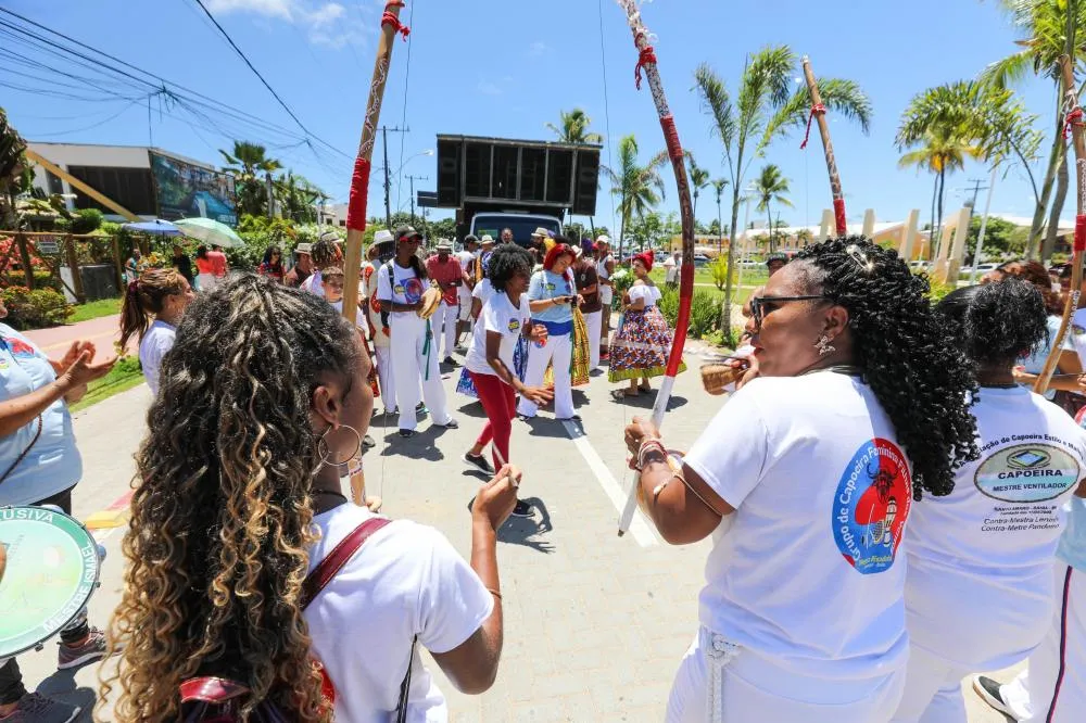 No meio dos grupos culturais, também teve espaço para estreia nos festejos da localidade e demarcação de uma importante bandeira de luta. “A tendência é fazer com que a cultura em si traga esse olhar melhor ainda para que mulheres se sintam mais acolhidas. As mulheres que estão aqui são mães, donas de casa e o sonho era praticar capoeira e nunca tiveram oportunidade. Hoje eu sou feliz e agradeço a Deus, à gestão, e à Secretaria de Cultura que se sensibilizou e nos convidou para participar desse momento histórico da nossa cidade”, pontuou Mestra Risadinha da Capoeira Feminina Filhas do Vento.