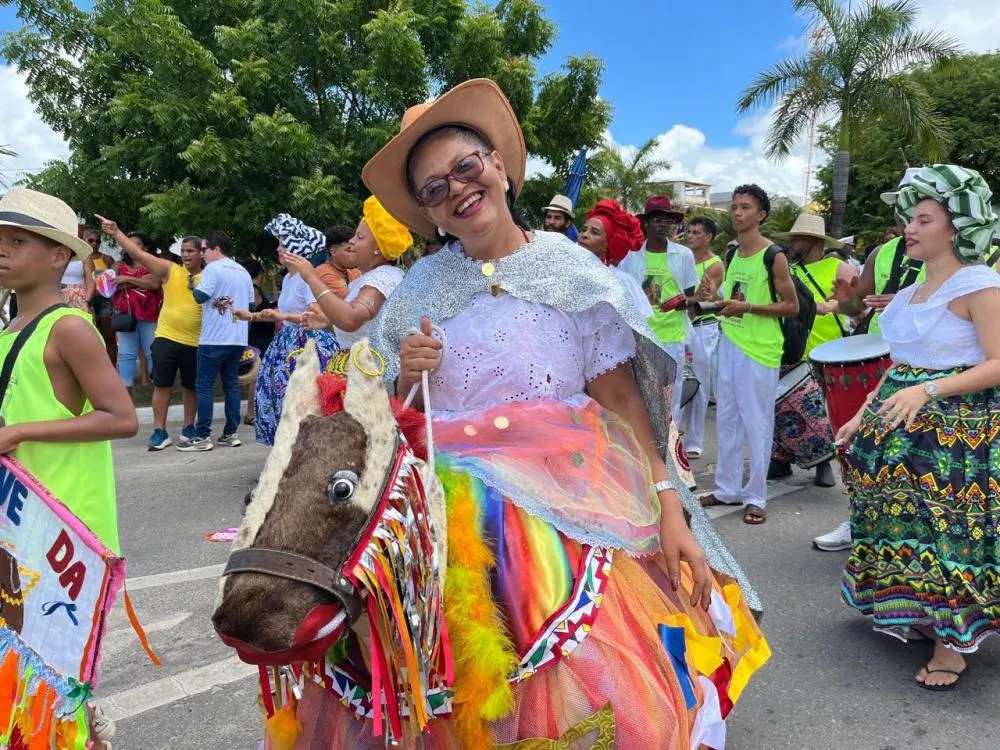 O clima de festa e tradição tomou conta da Rua Direta de Arembepe, na manhã desta terça-feira (4), com o início da Virada do Carnaval, promovida pela Prefeitura de Camaçari, através da Secretaria da Cultura (Secult). O evento começou com um cortejo vibrante, reunindo grupos culturais, blocos e manifestações populares, que desfilaram da entrada da localidade até a Praça das Amendoeiras, resgatando e valorizando a identidade cultural local.