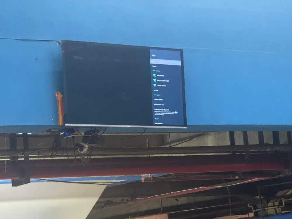 A TV será ajustada com canais aberto para o público que frequenta a praça de alimentação, para apreciar a programação enquanto faz suas refeições.