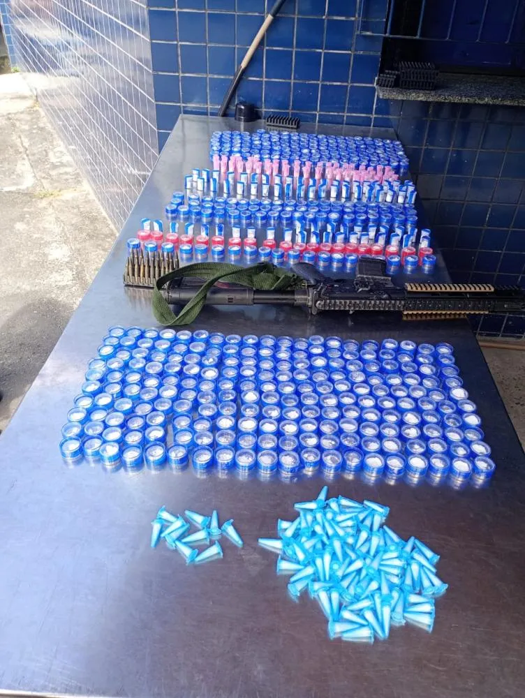 Os militares realizavam rondas na localidade conhecida como Travessa Paraíso, quando se depararam com um grupo de indivíduos armados, que fugiu ao avistar os agentes. Durante o acompanhamento, os policiais encontraram um fuzil calibre 556, munições e 645 porções de cocaína. Nenhum suspeito foi preso.