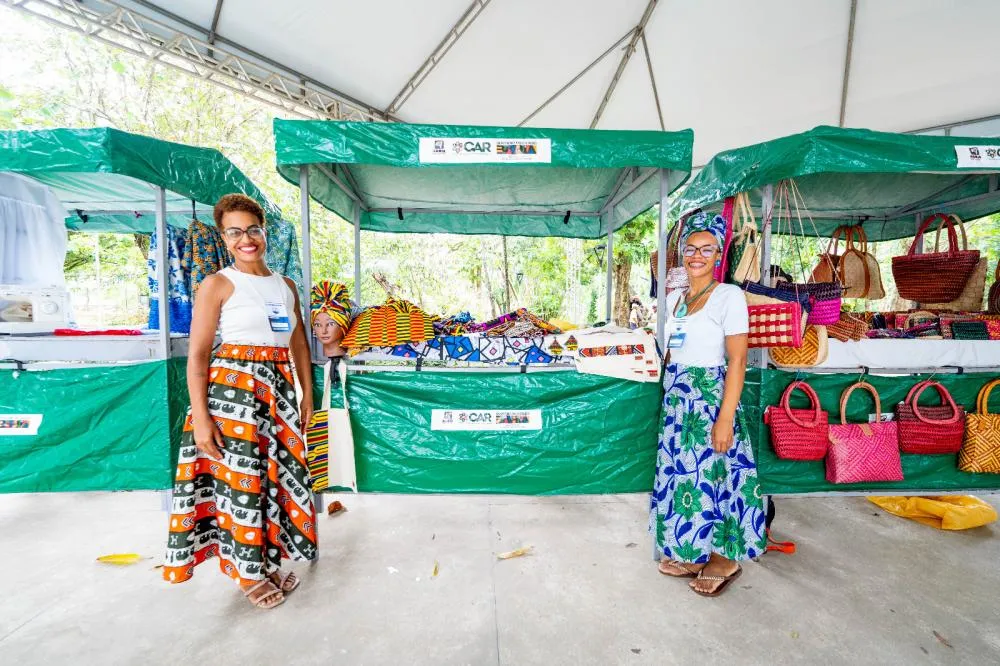 Exposições de produtos artesanais produzidos pelos povos originários também estavam disponíveis para apreciação popular.