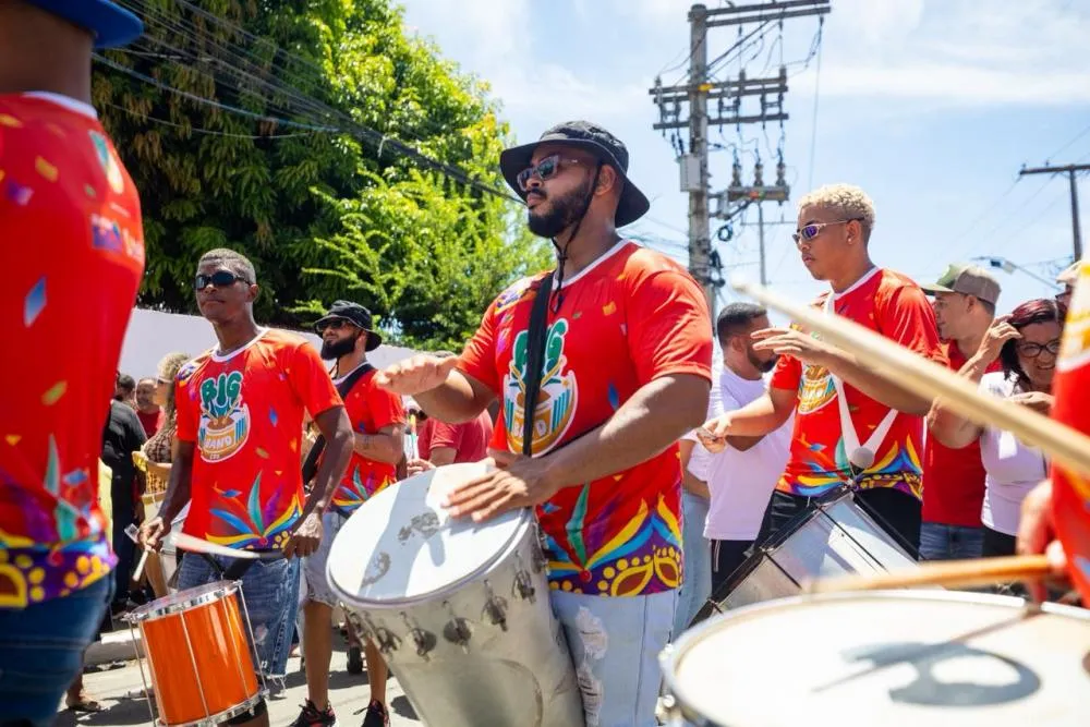 Além das baianas, o cortejo foi marcado pela valorização das raízes culturais, com a participação de diversos grupos culturais. Representando a tradição local, o Espermacete, já consolidado na comunidade, levou às ruas 13 integrantes. Após o falecimento, em 2024, da Mestra Nildes - fundadora do grupo -, os filhos Mileide e Vitor Bonfim deram continuidade ao trabalho, mantendo vivo o legado deixado por ela. “Mesmo diante das dificuldades, damos continuidade e, por meio da nossa união, seguimos pedindo força à nossa mestra, que, tenho certeza, nos ajuda espiritualmente. Não vamos deixar morrer a nossa cultura popular, que é uma herança linda”, destacou Mileide, 32 anos.