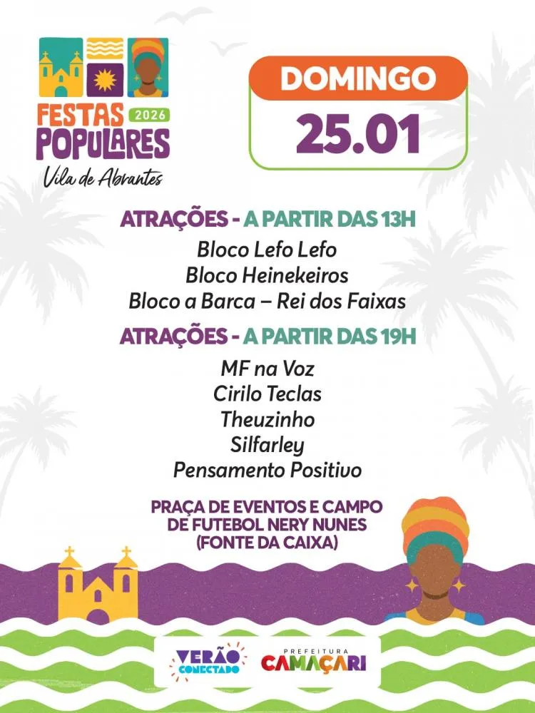 A Lavagem de Vila de Abrantes reafirma o seu lugar no calendário cultural de Camaçari como um dos momentos mais simbólicos de encontro entre fé, tradição e celebração popular. Com uma programação que reúne, além do cortejo religioso em homenagem ao padroeiro São Sebastião, uma extensa agenda festiva, o evento promete movimentar a localidade e atrair moradores e visitantes ao longo de três dias de celebrações.